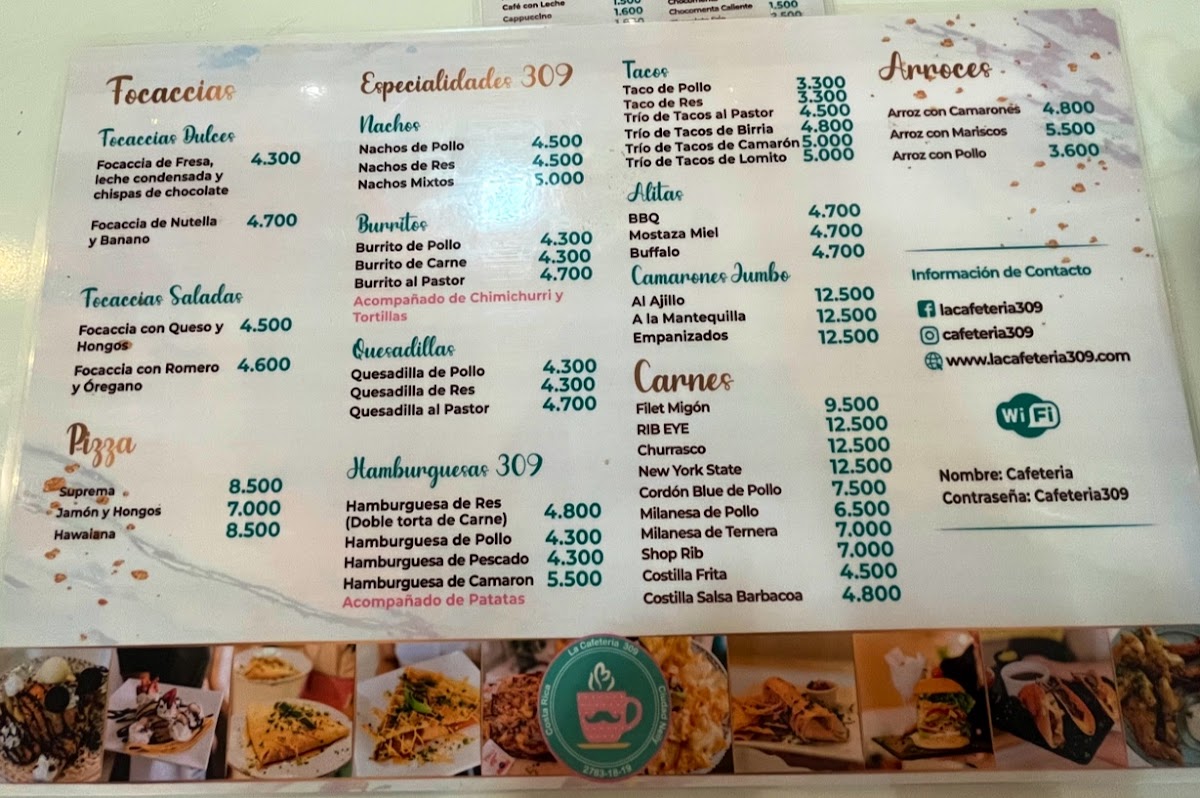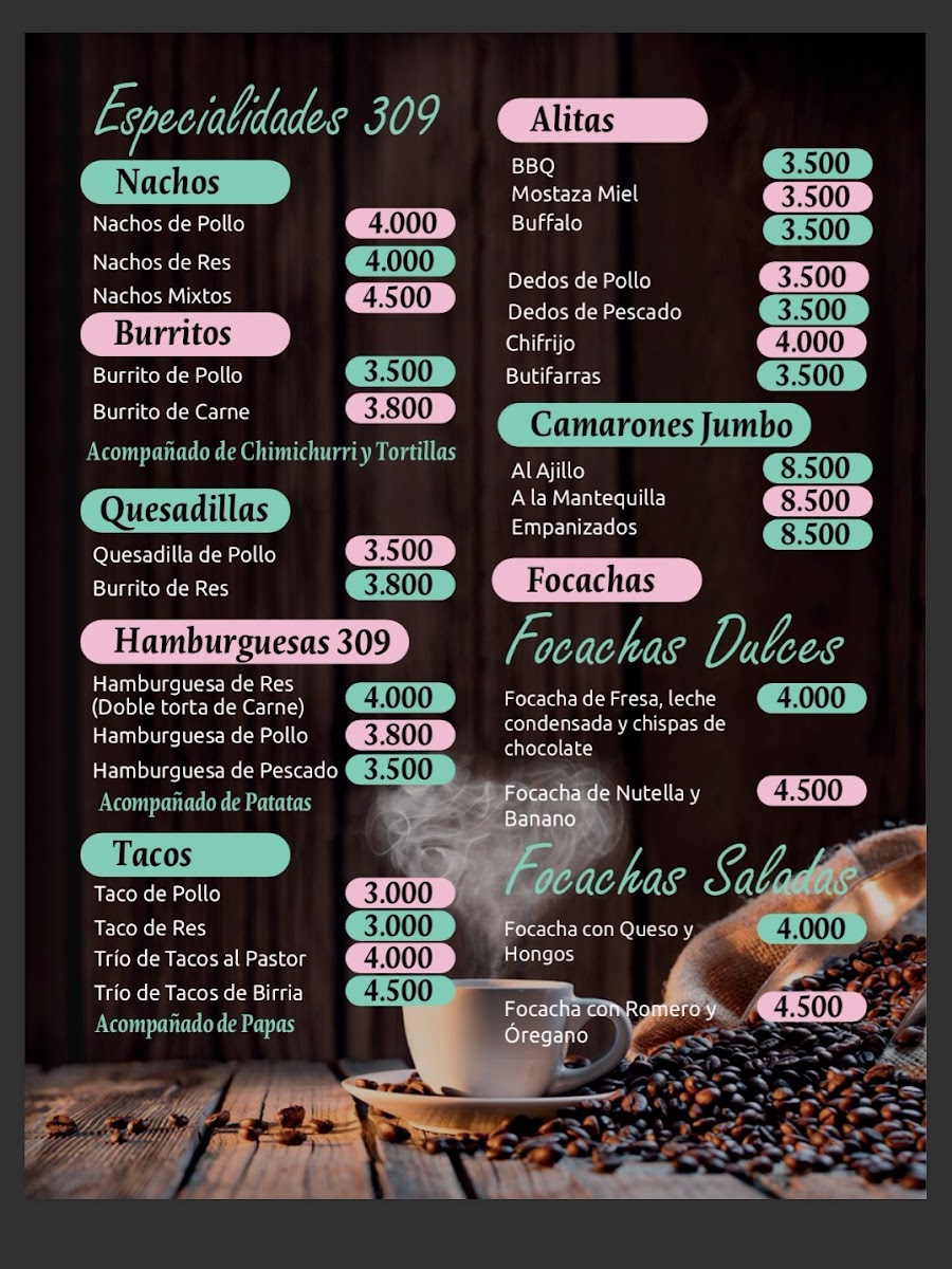 The menu at Café 309 offers a delightful array of dishes that blend traditional flavors with creative twists. Among the standout options is the Crepa Caprese, a savory crepe filled with fresh mozzarella, tomatoes, and basil, offering a light yet flavorful bite. If you’re in the mood for something more hearty, the Gordon Blue is a classic choice, featuring tender chicken stuffed with ham and melted cheese, perfectly breaded and fried to a golden crisp. For a chicken lover’s delight, the Hamburguesa de Pollo delivers a juicy chicken patty served in a soft bun with fresh toppings, a simple yet satisfying dish.